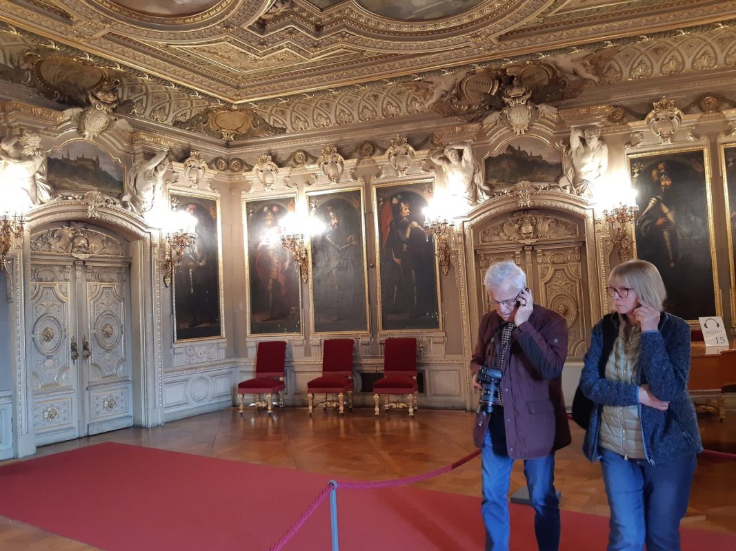 Anstelle einer geplanten Führung erhielten wir mit unserer Eintrittskarte ein Audio-Gerät, mit dessen Hilfe wir Informationen über das Gebäude selbst, alle Räume, Gegenstände und Gemälde abrufen konnten. Einige Teilnehmende fanden dies besser als eine Führung.