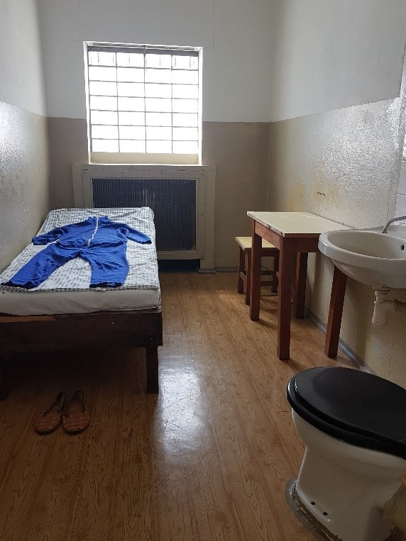 Später waren die Zellen nicht mehr im Keller und bekamen auch Licht durch ein mit Glasbausteinen verschlossenem Fenster.